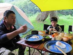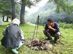 土曜日の夕方から合流していたボスも今日が帰りの日となってしまいました。 昨晩も遅くまで焚き火を楽しんでいたようで、今朝はゆっくり目にテントから出てきました。 熊には好かれているボスですが、このところ岩魚には嫌われているようで… 先週降った雨で水量が多めの渓流は、毛鉤釣りには悪条件で釣果はさっぱりでしたが、貧果のうっぷんを晴らすべく、朝から焚き火を楽しんでおります。