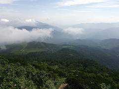 俎嵓(まないたぐら)まであとひと息。眼下に熊沢・広沢田代、目を凝らすと七入駐車場も見える。