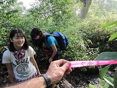 広沢田代へ向かう登り。昨日までの雨で足場がヌタヌタ。かあさんがバテるので、スローペースで登る。