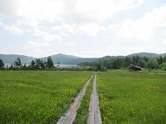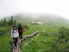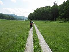 沼山峠に向かって、大江湿原の木道をすすむ。
