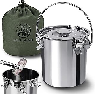 私が購入したのは、OUTBEARの消壺のMサイズで、直径20cm、高さ20cm。撤収直前まで焚き火好きが火を焚いているので、大きなサイズを選びました。