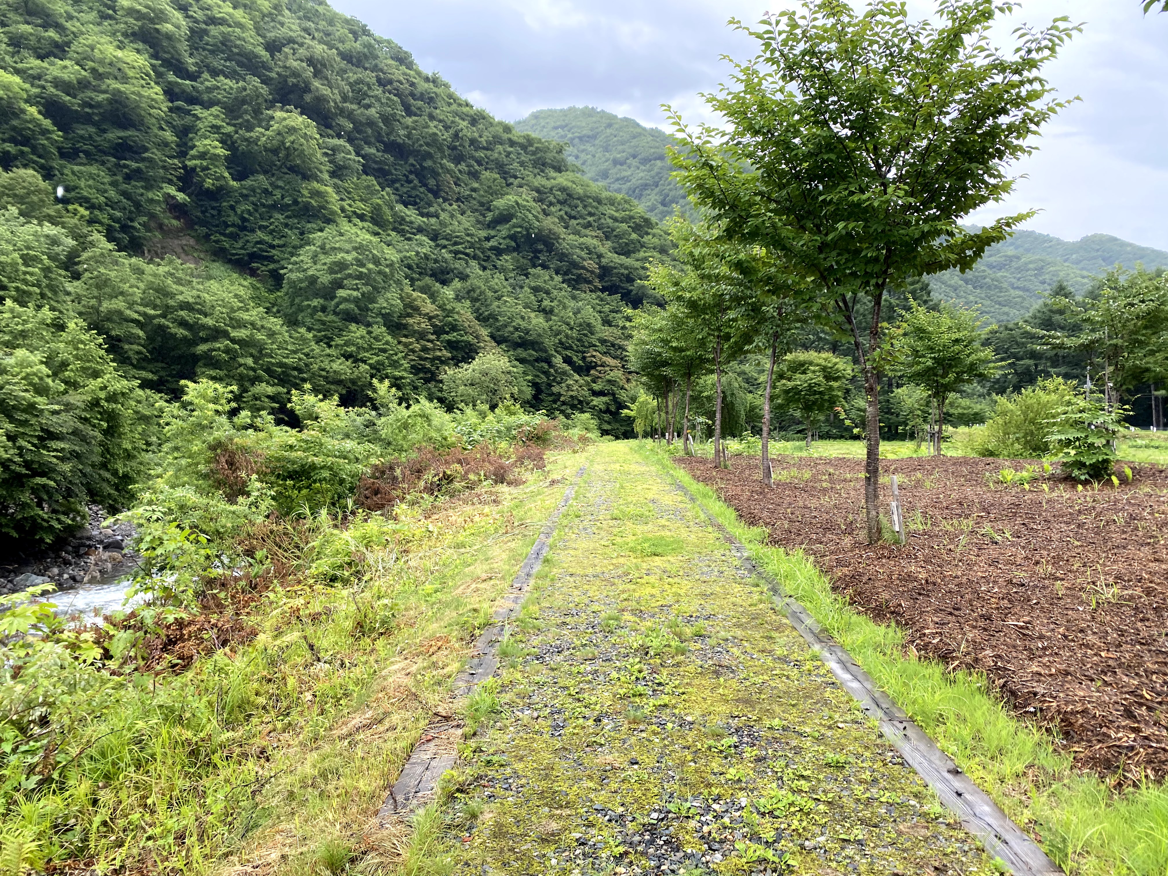 キリンテ橋で対岸側に渡り、コースケと合流。二人で釣り上がっていくが、ここからは全く反応なし。大根卸の蕎麦畑の外れまで釣り上がって終了とする。