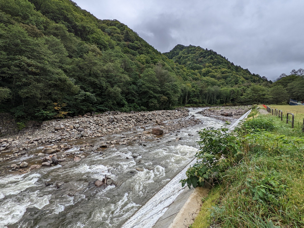 朝5時起床。昨晩は時折雨が強く降ったが、台風の影響はそれほどでもなかった七入。と思ったのだが、キャンプ場前の実川も七入沢も茶色に濁って大増水。Nパパも起きて来たが、川の状況を見て、朝いちの釣りは断念したようだ。